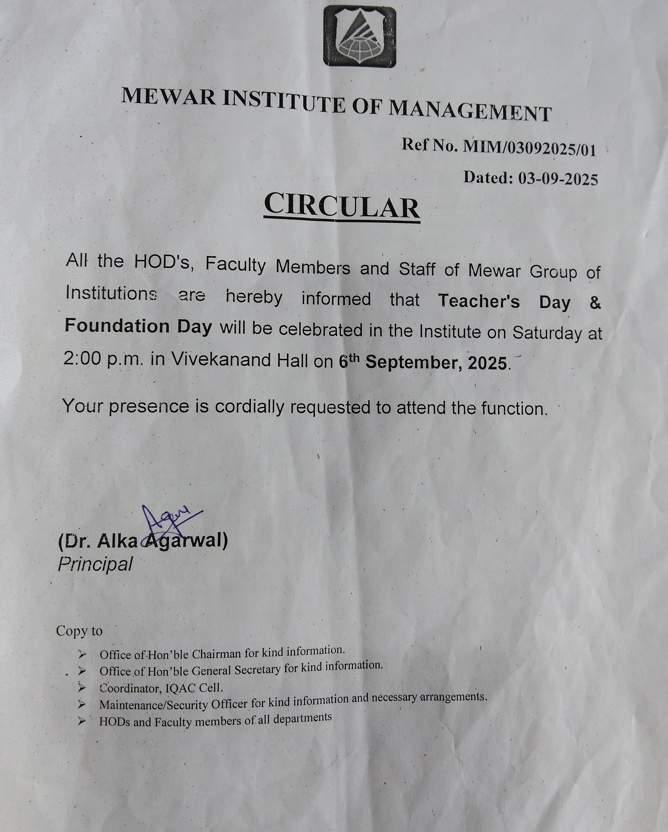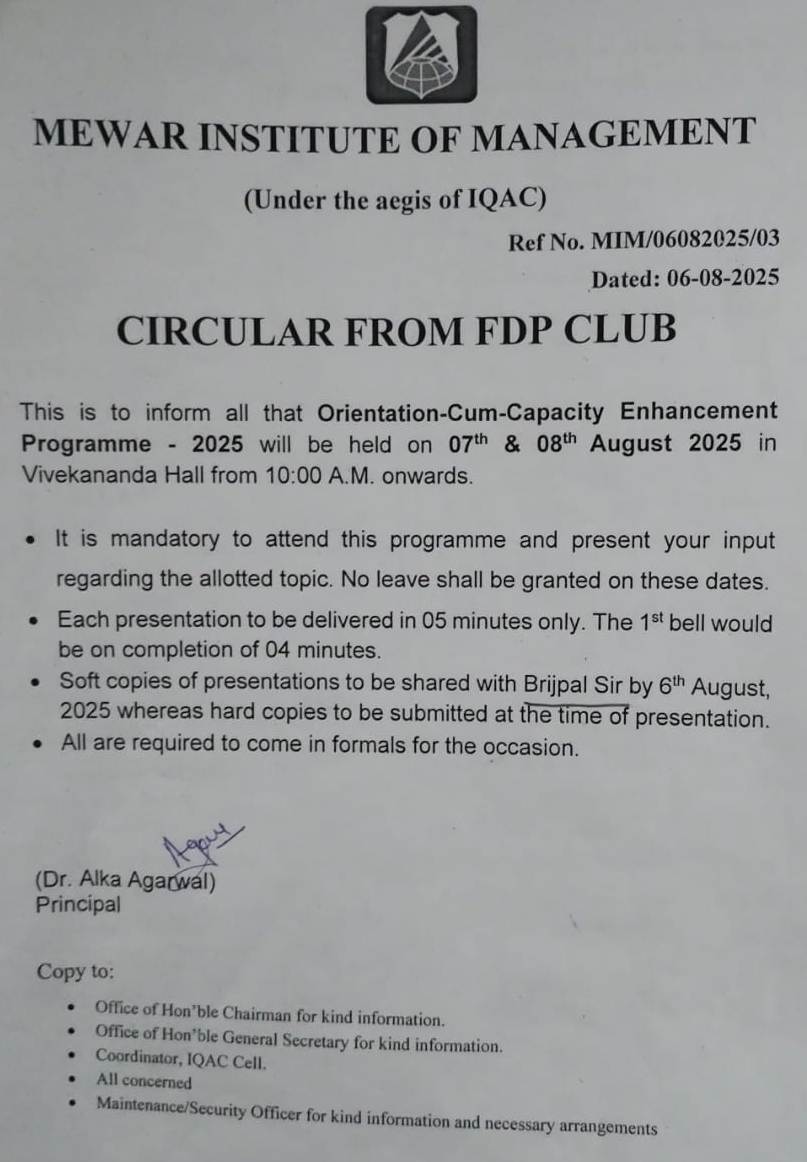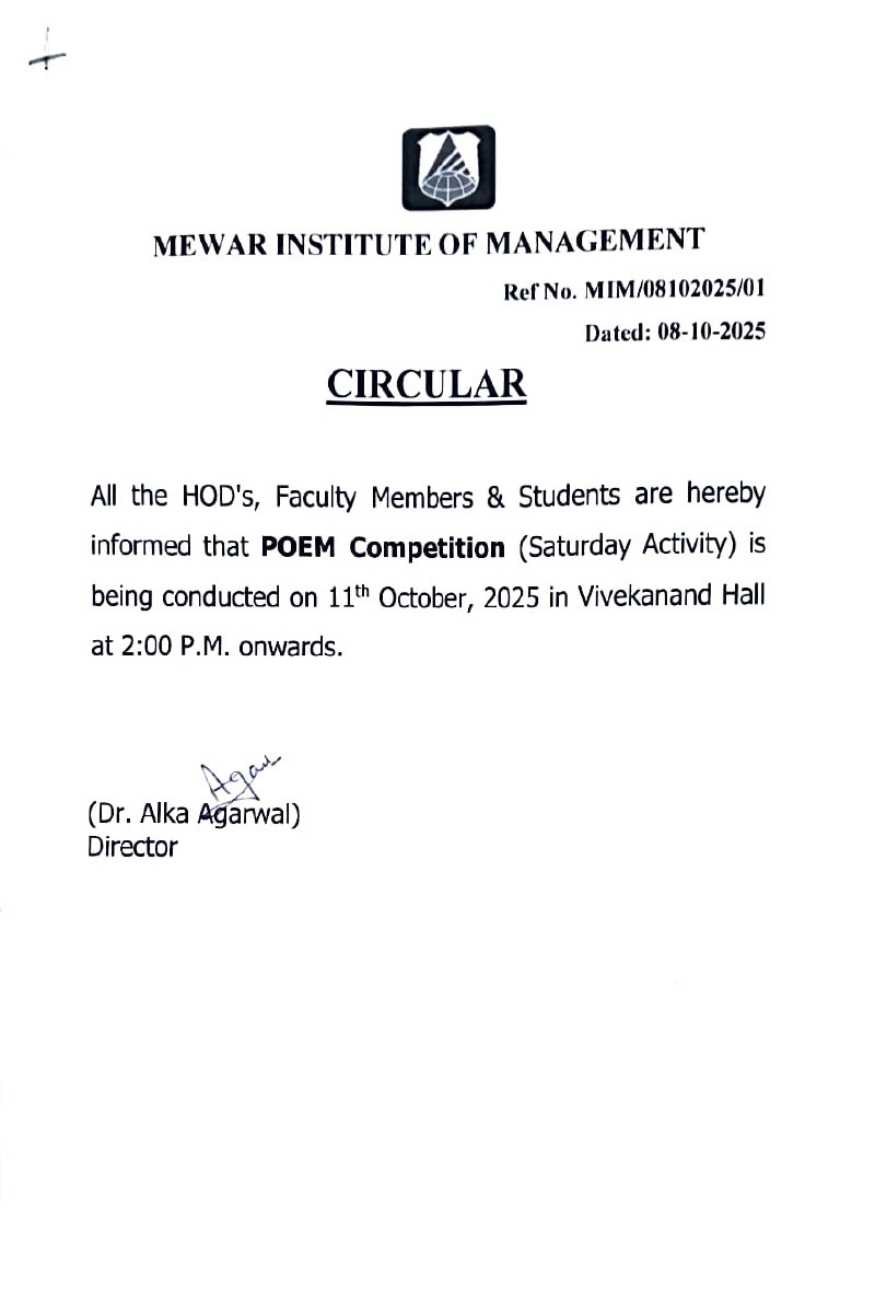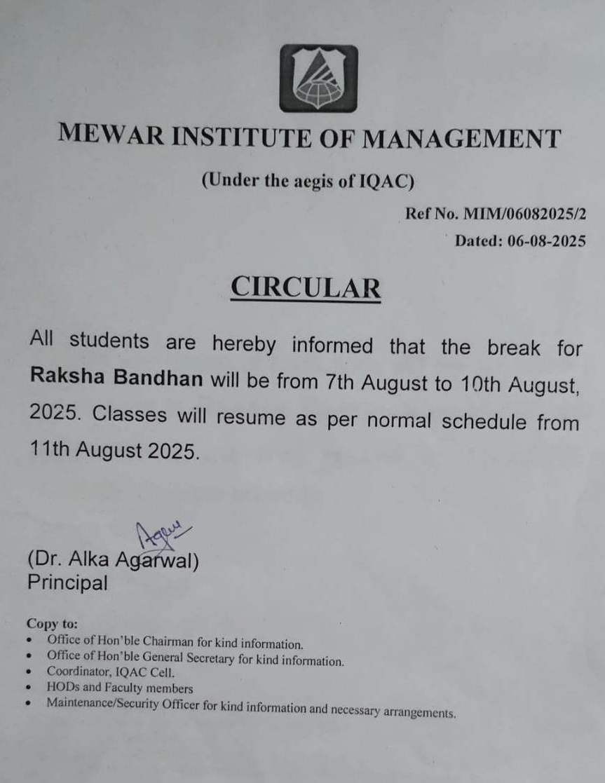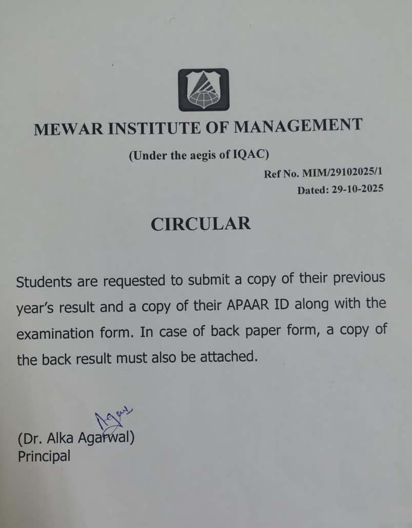 Circular in Mewar Institute