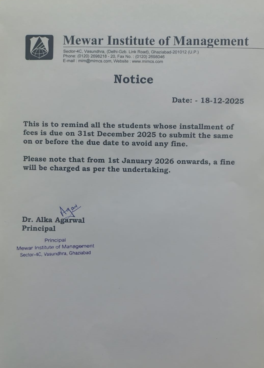 18-12-2025 All the students whose installment of fees is due on 31st December 2025 to submit the same on or before the due to avoid any fine. View PDF