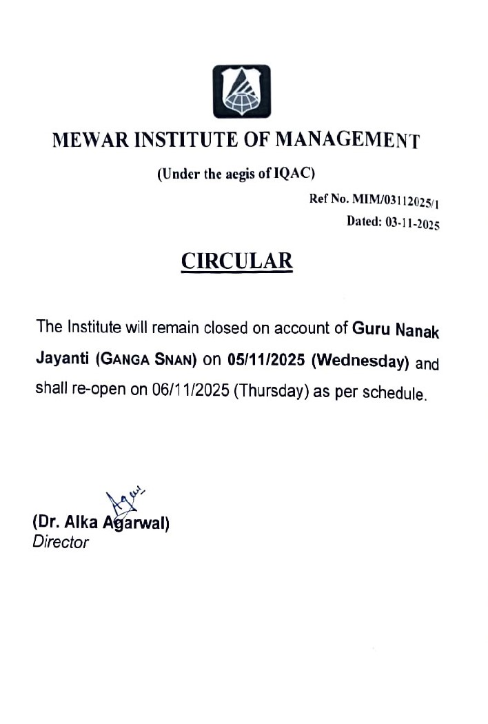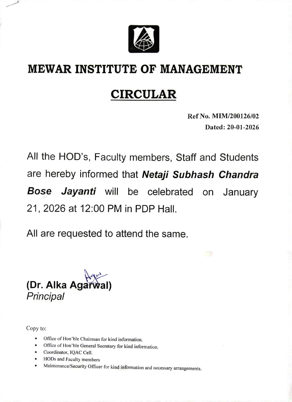 Circular in Mewar Institute